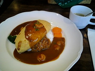 ネットでおいしそう!と思った小エビのカレーオムレツ乗せを注文。