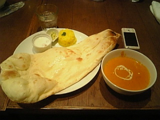 写真1は今日のお昼ご飯。右端は同期から拝借した携帯。ナンのでかさが半端じゃなかった。でもおいしかったー!
