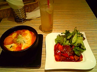 牛タンスンドゥブ1200円、コラーゲンフルーツカクテル550円。1750円分追加。