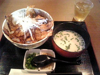そしてこれは、今日食べた豚バラ丼。豚骨スープでひつまぶしみたいにして食べるらしい。